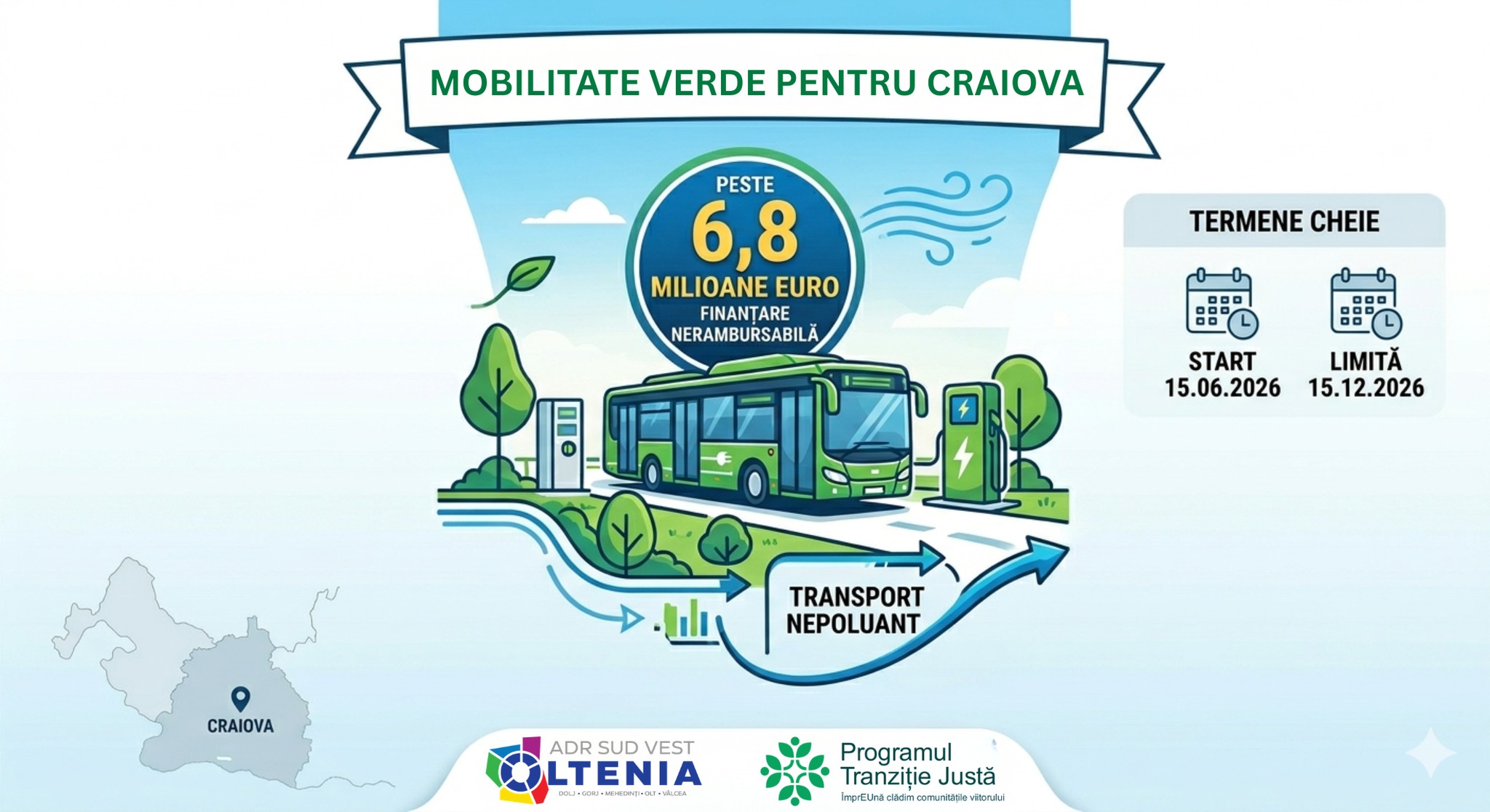 NOUTĂȚI ADRSV - Mobilitate verde și aer mai curat: peste 6,8 milioane de euro pentru transport nepoluant în Craiova